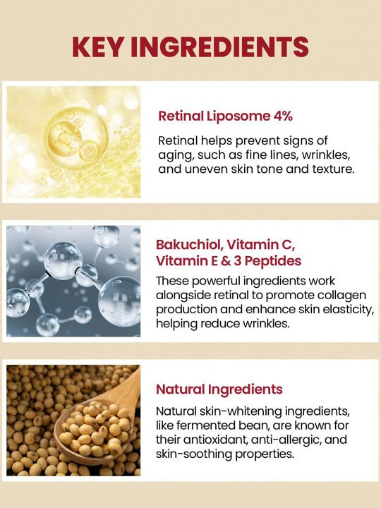 Visibly smooths wrinkles & fine lines – Retinal + peptides boost collagen.